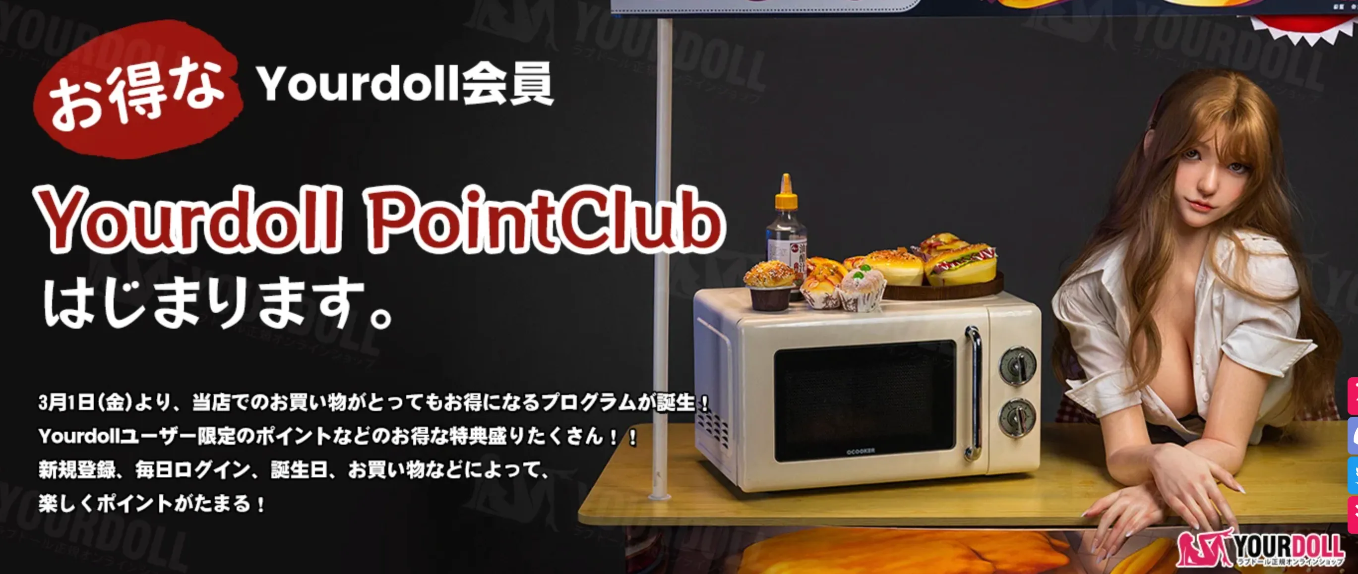 YourDollは「買う前からアフターサービスまで丁寧に」というスタンスで、チャット相談・メール対応・キャンペーン・ポイント制度など、“購入体験の不安を減らす仕組み”を複数用意しています。